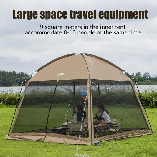 Screen House Zippered Mesh Tent 11x11 FT, Outdoor Camping Picnic Screen Canopy, Backyard Family Party Canopy Sun Shelter Gazebo Patios Shelter