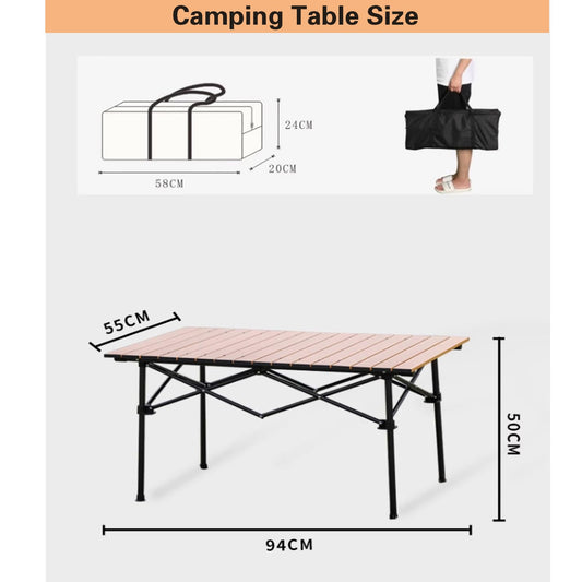 MOQI Camping Table, Lightweight Aluminum Roll Up Table Folding Rectangular Table 4 People Portable Picnic Beach Table with Carry Bag for Outdoor, Backyards, BBQ Party, Garden, Wooden Color