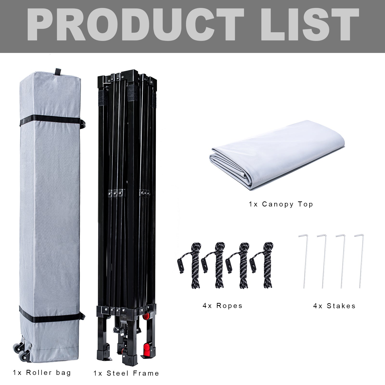 - The packaging includes 1 heavy-duty commercial frame, 1 thickened 300D Oxford top, 1 wheel bag, and 4 ground nails and wind ropes.